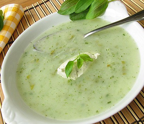 Ingredience: olej, větší cibuli, stroužky česneku ( podle chuti ), brambora, čerstvého špenátu, plnotučného mléka, sůl, zakysaná smetana nebo, strouhaného parmezánu,